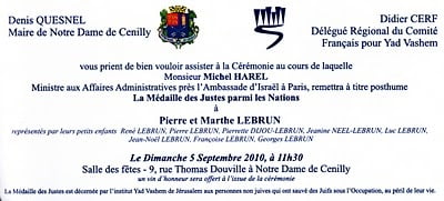 mhost2020-08-24T19:46:35+02:00Les 101 bougies d'un Juste parmi les Nations Tout le Comité Français pour Yad Vashemet ses sympathisantsallument 101 bougiespour l'anniversaire de Maurice Arnoult- Juste parmi les Nations -né le 23 juin 1908... Cordonnier émérite, Maurice Arnoult (Arch. CFYV / DR). Enfant puis adolescent, la vie ne lui réserve pas de cadeaux. Sa mère est tôt emportée par la tuberculose. Le père ne revient pas des tranchées de 14-18. La santé de Maurice Arnoult se confirme de très grande fragilité. Il est privé de scolarité. Et le voici à 101 ans. Décoré de la Légion d'Honneur car reconnu Juste parmi [...]