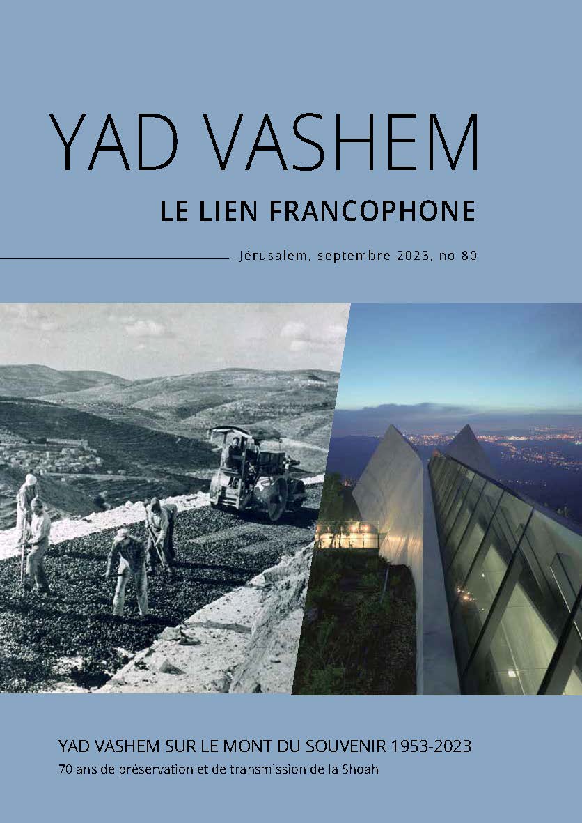 Voici le Lien francophone N°80 qui présente, comme à l’accoutumée, des informations sur le Mémorial de Yad Vashem et le Comité français pour Yad Vashem. En France, nous poursuivons notre activité à un rythme soutenu. Un séminaire à destination des enseignants est programmé en ce mois d’octobre à Jérusalem. Des villes de France rejoignent le Réseau Villes et Villages des Justes de France, des lieux porteurs de mémoire sont créés sur tout le territoire et de nouveaux dossiers de demande de reconnaissance au titre de Juste parmi les Nations sont constitués. Cette année nous commémorons les 70 ans de la création [...]