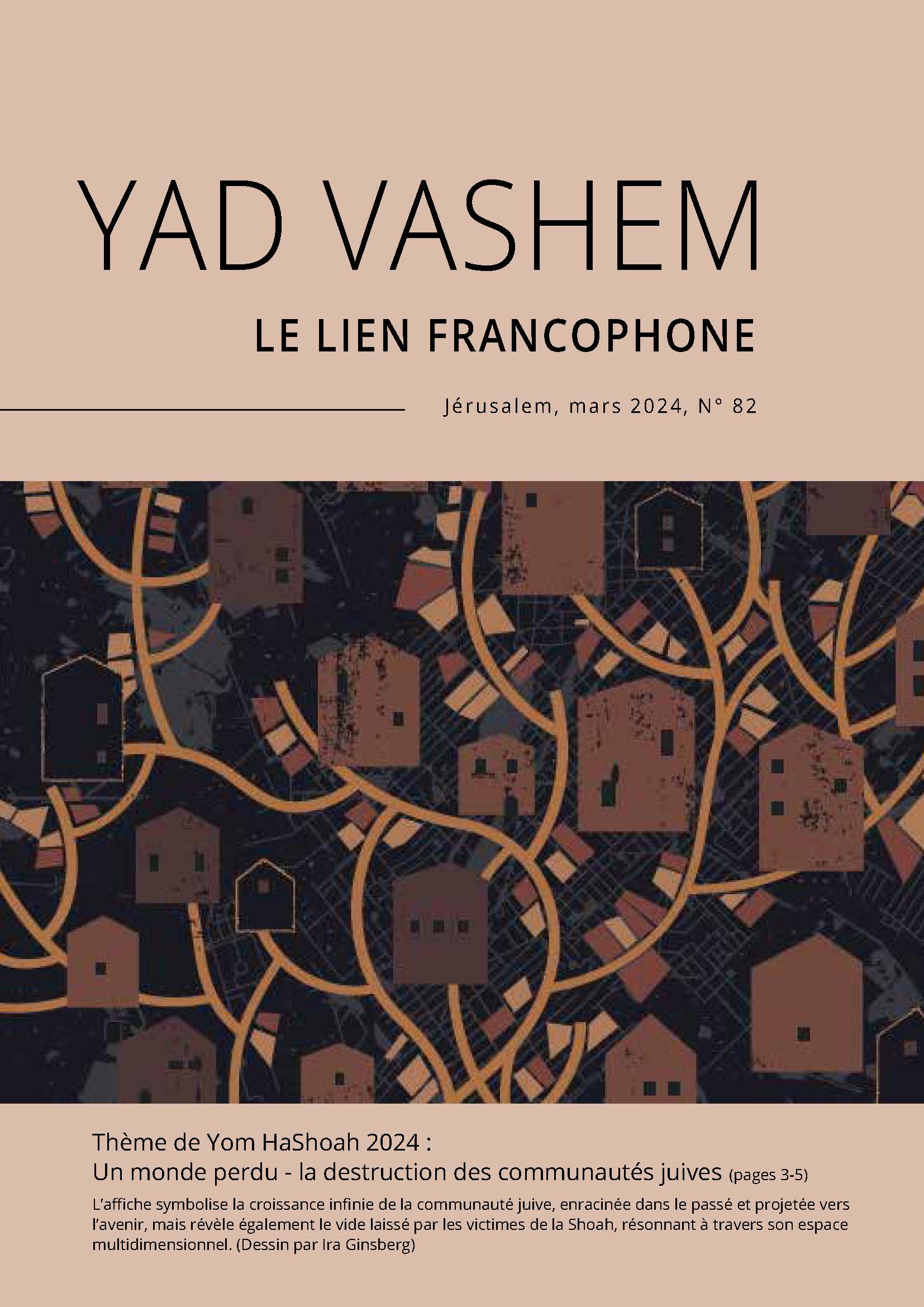Nous avons le plaisir de vous présenter le numéro 78 de la revue « Le lien francophone » édité par Yad Vashem - Institut International pour la Mémoire de la Shoah, dont les 4 pages centrales rendent compte des actions spécifiques menées par le Comité français pour Yad Vashem. Vous trouverez dans ce numéro, comme à l’accoutumée, de nombreuses informations sur les actions et les actualités de Yad Vashem et du Comité français, parmi lesquelles un article sur notre dîner de soutien qui a enfin pu se dérouler avec succès après deux années d’interruption et également sur la production de dix [...]
