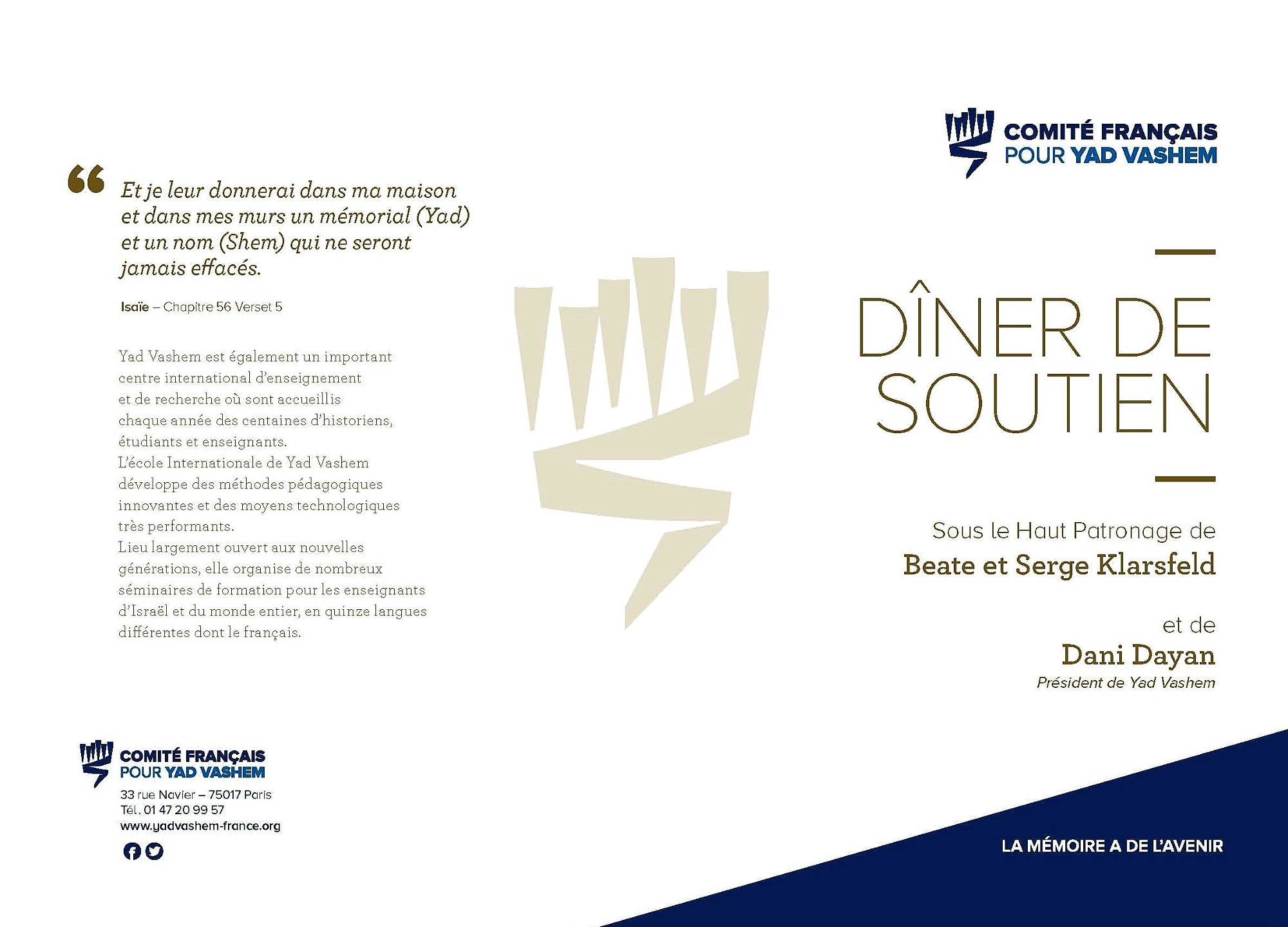 David Adam2022-01-21T16:34:39+01:00https://youtu.be/QagiRsT3Aus Le Comité français pour Yad Vashem célébrera mardi 18 janvier à 11 H le 15ème anniversaire de l’entrée au Panthéon des Justes parmi les Nations de France. A cette occasion, un parcours pédagogique des Justes parmi les Nations de France sera inauguré en présence d’une classe du lycée professionnel Théodore Monod de Noisy le Sec. Cette cérémonie, présidée par Pierre-François Veil, Président du Comité français pour Yad Vashem, en présence de Claude Chirac, sera l’occasion pour les personnalités suivantes de s’exprimer : Serge Klarsfeld Frédéric Salat-Barroux, ancien Secrétaire Général de la Présidence de la République (Jacques Chirac) Parcours pédagogiques [...]