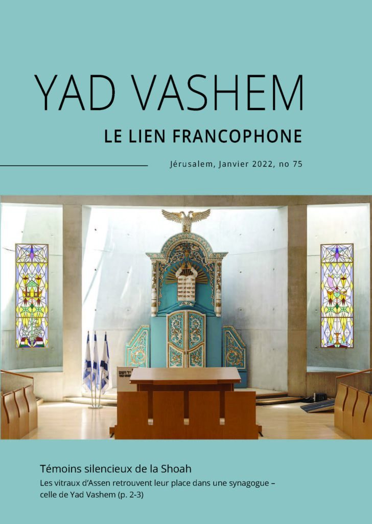 Nous avons le plaisir de vous adresser ci-joint le numéro 75 de la revue « Le lien francophone » édité par l’Institut Yad Vashem de Jérusalem dont les 4 pages centrales rendent compte des actions spécifiques menées par le Comité français pour Yad Vashem.
